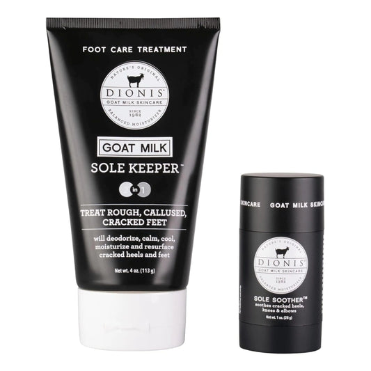 Dionis Goat Milk Skincare Sole Keeper & Soother - Deodorize Calm Cool Moisturize & Resurface Feet-Treats Repairs & Soothes Rough Dry Callused Cracked Skin Cruelty-Free Cream 4 oz & .78 oz Set