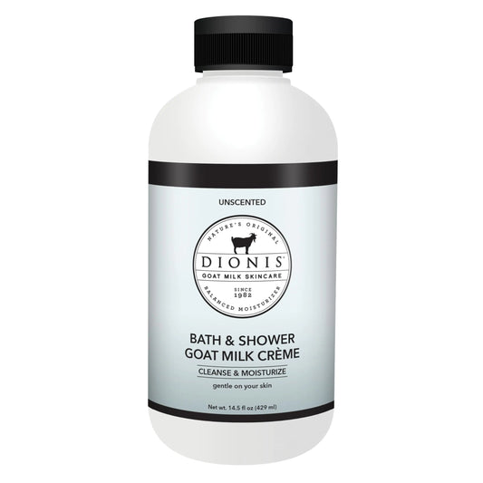 Dionis Goat Milk Skincare Unscented Bath Soap & Liquid Shower Crème Skin Moisturizer & Hydrating Body Wash Made in The USA Cruelty Free Shower Gel For Sensitive Skin 14.5 oz Bottle